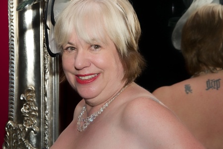 I was wearing my Red Dress so I just had to wear my Red Stockings and shoes too and of course No Knickers, buts whats on under the Dress, you guessed it my Red Basque of Course.Auntie Trisha...