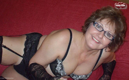 Michelle, mature milf whore in hotelroom is dressed in sexy black lingerie and nylon stockings. Michelle slowly strips nude.