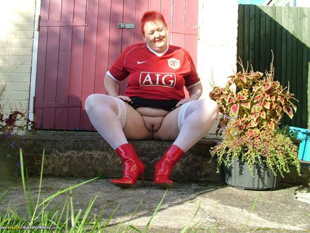 Hi Guyz. I am a HUGE Man Utd fan, and also a HUGE fan of shooting pics in the garden, for my neighbours......rofl. Im sure you will enjoy this little set of me in my shirt, with white stocki...