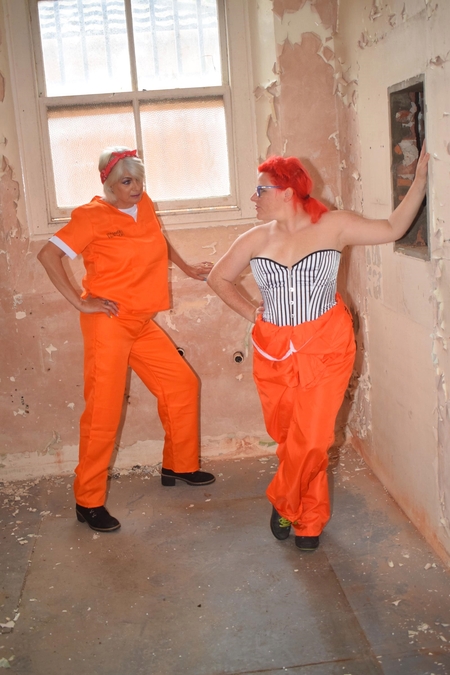 Two naughty ladies in a prison flash there tits