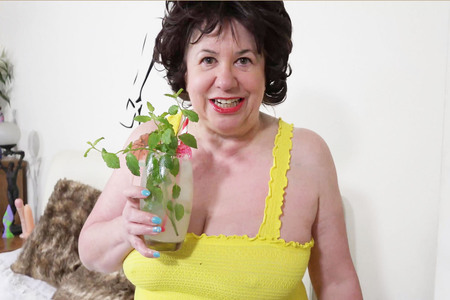Manuela, horny mature milf whore dressed in sexy leather outfit shows she loves to masturbate and play with her pussy.