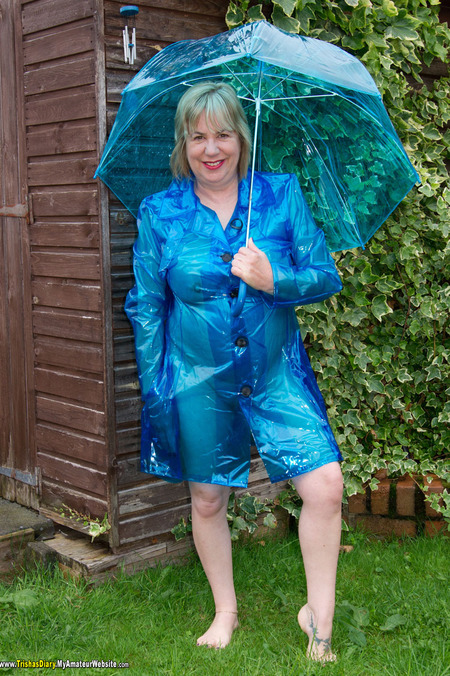 Dear Diary, I had gone to stay with Britlady for a long weekend of photo-shoots and fun, and after it had been raining hard I just had to get out in the garden in my PVC Raincoat and roll ar...