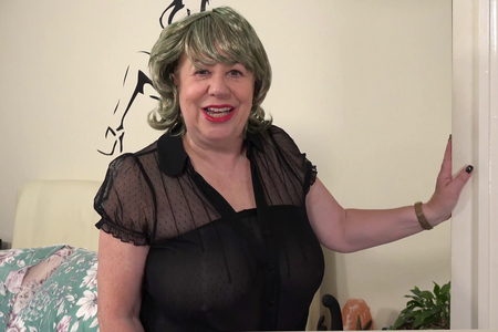 6:07 ... Auntie sucks her niples and heel fucks her self in a black garter belt and bra